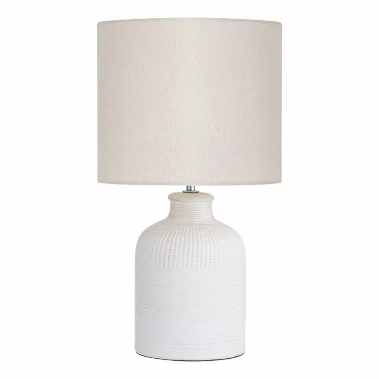 Give your living space a refreshing new look with the Amalfi Isla Table Lamp. It features a timeless white textured ceramic base and a lampshade in a natural-looking off-white coloured fabric that’s guaranteed to complement any room around your home. To prolong the life of your item it is recommended to regularly wipe clean with a dry cloth.