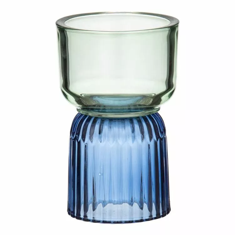 A great way to add a pop of colour to your interiors, the Amalfi Palais Candle Holder 10.5 x 16.5 cm Cobalt is both stylish and practical. It features a combination of ribbed and soft glass in a cobalt and mint colour palette. Perfect for tea lights and small pillar candles, place it in the centre of your dining or hallway table. The candle holder is also multifunctional – simply turn it upside down for a different coloured base.