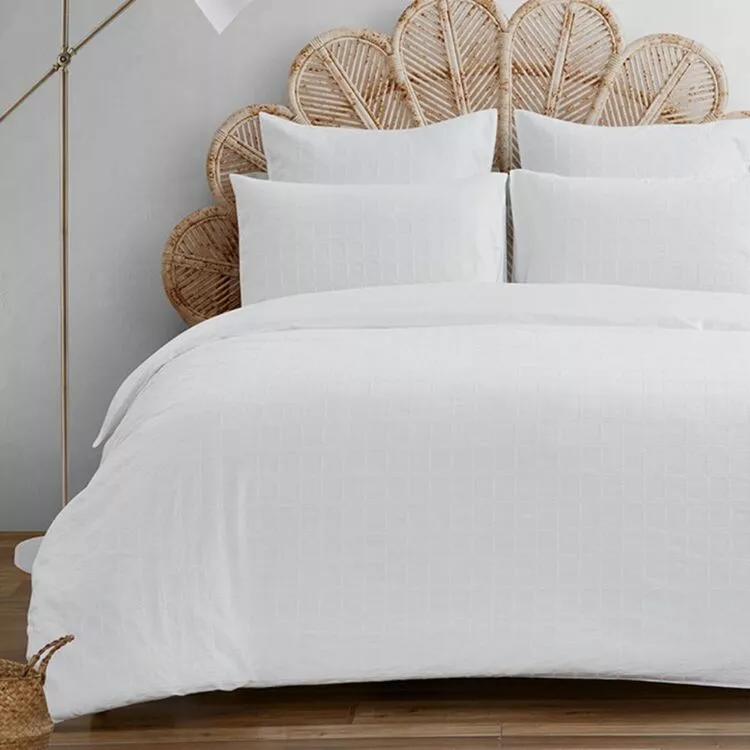 Ensure you are sleeping in total comfort with this gorgeously textured Chyka Home Mills Cotton Jacquard Quilt Cover Set from our Chyka Home collection. Created with a 300 thread count cotton reverse from cotton jacquard fabric, this white cotton quilt cover set will bring an extra sense of peace and tranquillity to your bedroom. This quilt set is durable and naturally breathable, making it suitable for every season.