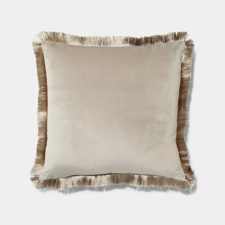 Elysian Velvet Fringe Cushion Linen 50 X 50 Cm
