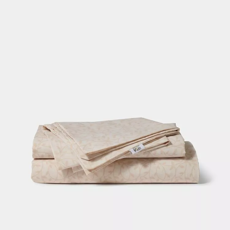 The Jelly Bean Kids Vine Single Bed Sheet Set will be a charming addition to your little one’s bedroom. This set features a delicate pattern of climbing leaves in a soft rose colour, creating a beautiful texture from up-close and afar. Mix and match with other gorgeous bed linen from Jelly Bean Kids to create the ultimate sleeping sanctuary.