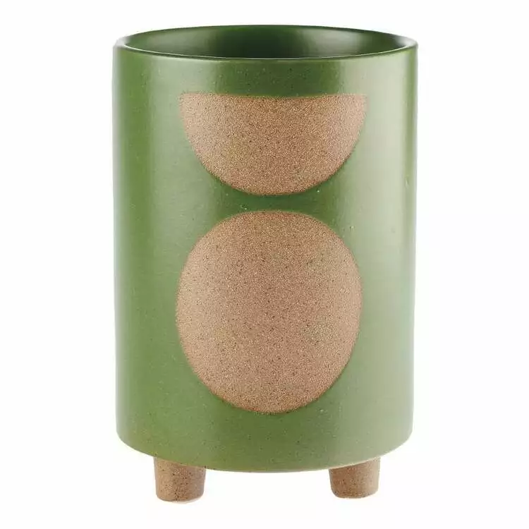 Charming and equally quirky, the Linen House 20cm Planter Pot Elm Green includes little legs for a base and offers an eye-catching shape in a colourful matte glaze of green. Made from durable stoneware, this planter pot also has a drainage hole within its base and rubber stoppers, should drainage not be required.