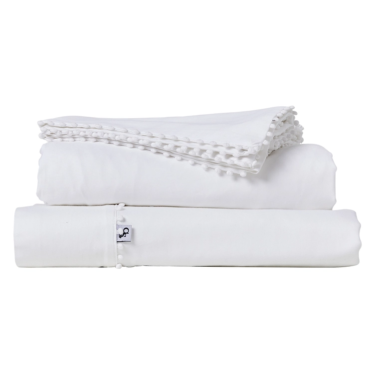 Embroidered trim on flat sheet and pillowcase