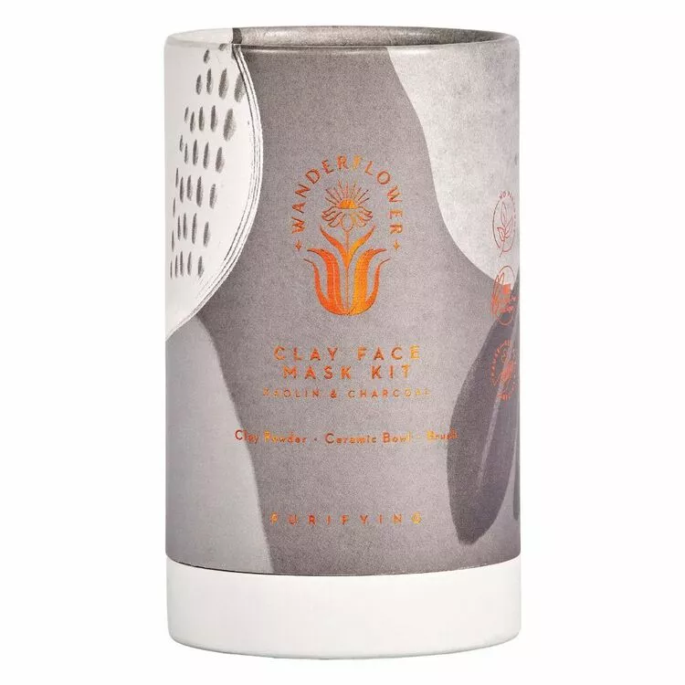 The Wanderflower Clay Face Mask Kit will give your skin a beautiful, natural glow. This nature-inspired kit, containing kaolin and charcoal Clay Powder, is complete with a bespoke Ceramic Bowl and a Brush Applicator. Whether you’re treating yourself to a pamper on a sleepy Sunday morning, or you want your skin to have that extra glow before a day out, simply open up your Clay Face Mask Kit. Mix the powder with water in the ceramic bowl and smooth the mask over your face, inhaling the earthy scent as it dries. Soon, your face will glow: cleansed, purified, and cared for. The carefully considered formula contains no parabens, is vegan friendly and cruelty free for your peace of mind.